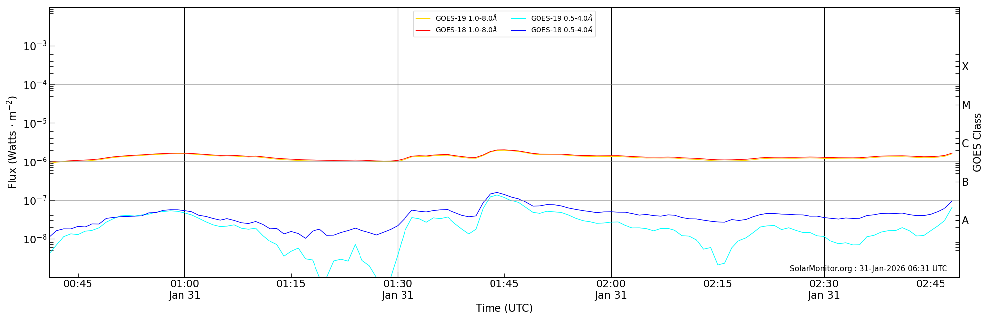 | 2026-01-31T01:41:00 | 01:45:00 | 01:49:00 | 12, -61 | 14366 | C2.0 | HEK : SSW Latest Events |