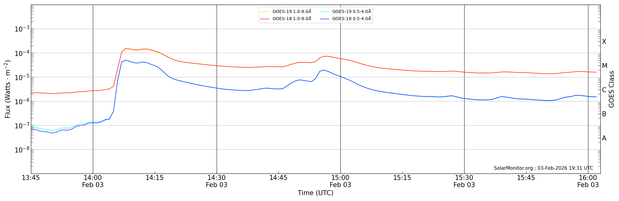 | 2026-02-03T14:45:00 | 14:56:00 | 15:03:00 | 15, -17 | 14366 | M7.2 | HEK : SSW Latest Events |