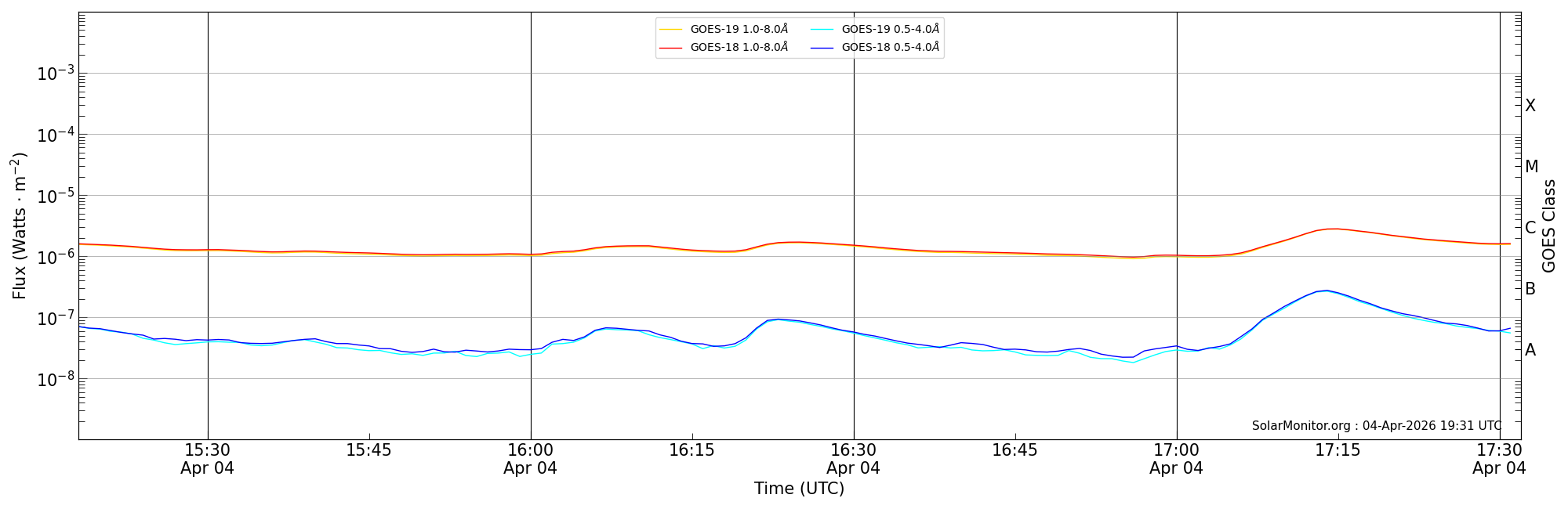 | 2026-04-04T16:18:00 | 16:25:00 | 16:32:00 | 2, 12 | 14409 | C1.7 | HEK : SSW Latest Events |