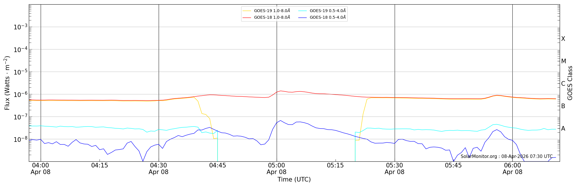 | 2026-04-08T04:57:00 | 05:01:00 | 05:12:00 | 13, -74 | 14414 | C1.3 | HEK : SSW Latest Events |