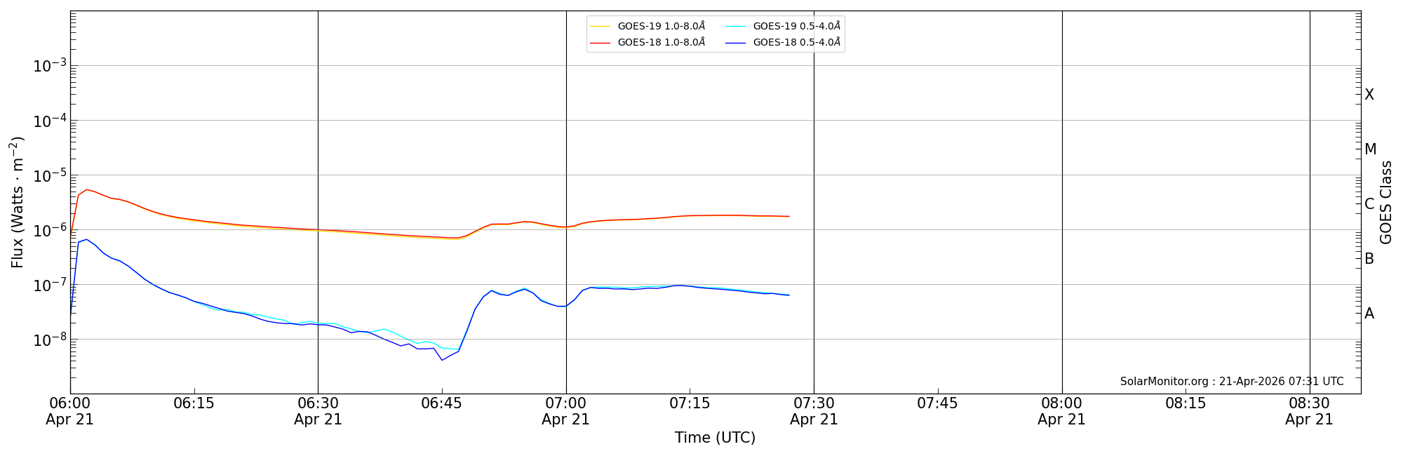 | 2026-04-21T07:00:00 | 07:19:00 | 07:36:12 | 16, -66 | None | C1.8 | HEK : SSW Latest Events |