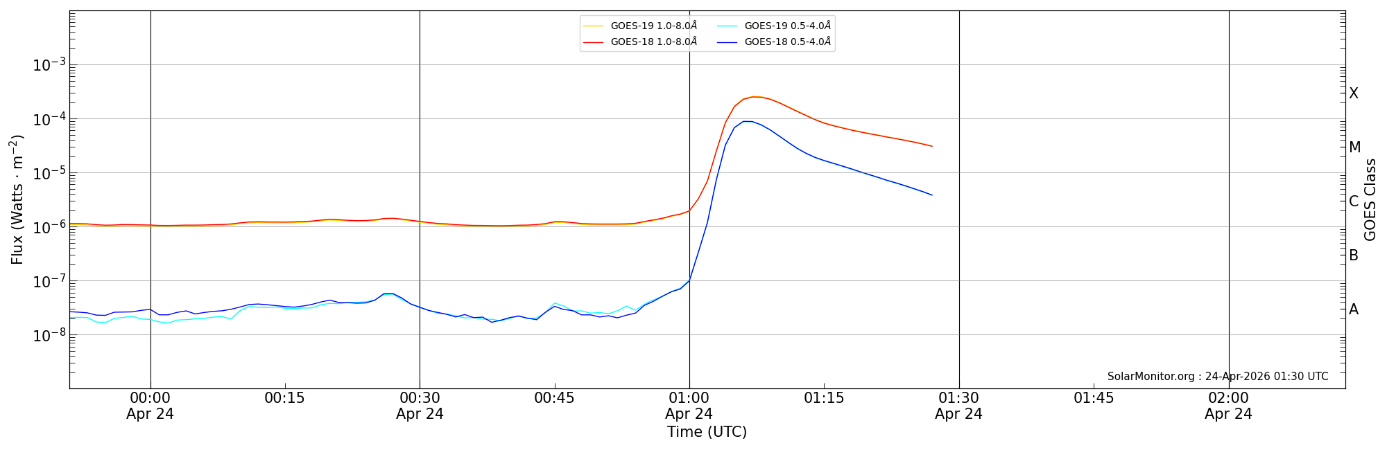 | 2026-04-24T00:51:00 | 01:07:00 | 01:13:00 | 16, 68 | 14419 | X2.4 | HEK : SSW Latest Events |