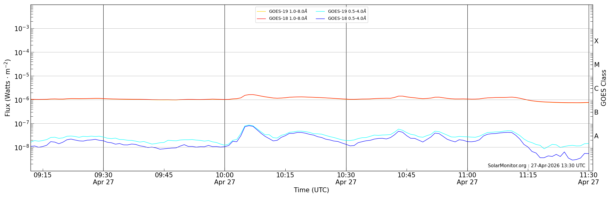| 2026-04-27T10:12:00 | 10:19:00 | 10:31:00 | 18, 18 | 14420 | C1.3 | HEK : SSW Latest Events |